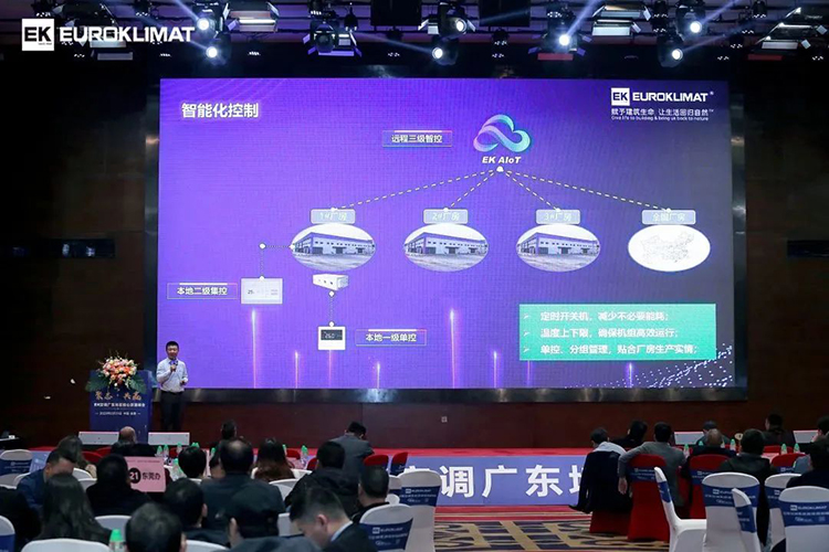 會議現場,EK空調產品經理就云智慧高效集成冷站、工業大多聯、變頻模塊機等EK核心產品的優勢特點、應用場景、應用案例進行了詳細介紹。