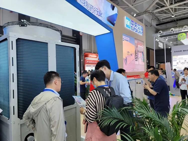 展會首日,EK中央空調展位人氣爆棚,前來咨詢和洽談的客戶絡繹不絕。EK工作人員為到場嘉賓詳細介紹了每一款參展機組的性能、技術優勢和應用場景。