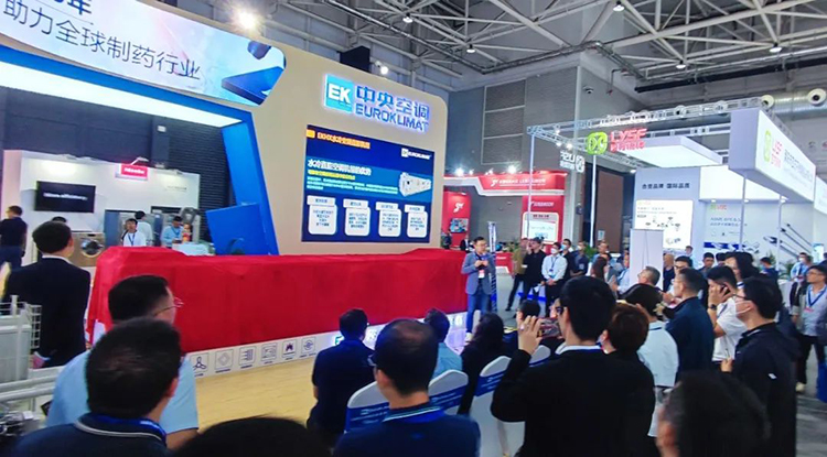 本屆展會,EK以制藥廠房潔凈度、溫濕度需求以及高能耗痛點為核心,針對制藥車間、藥品倉儲、實驗室等不同場景提供低碳化、智能化的專業空氣解決方案。EK高效雙冷源深度除濕凈化機組作為本次參展的新品,在本屆藥機展隆重揭幕。