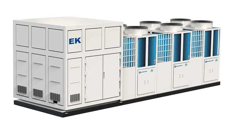 EK一體化云智慧酒店能源站以熱回收、變頻模塊機組和空調系統、熱水系統為核心,根據客戶的負荷需求以及項目實際情況對控制柜、AI系統、冷凍水泵、熱水水泵、閥門管路進行最優選型匹配,通過工廠復核選型、一體化設計、預制化生產、整機運輸,實現現場快速安裝調試使用。機組現場只需連接水管和通電即可運行,節省安裝施工時間。
