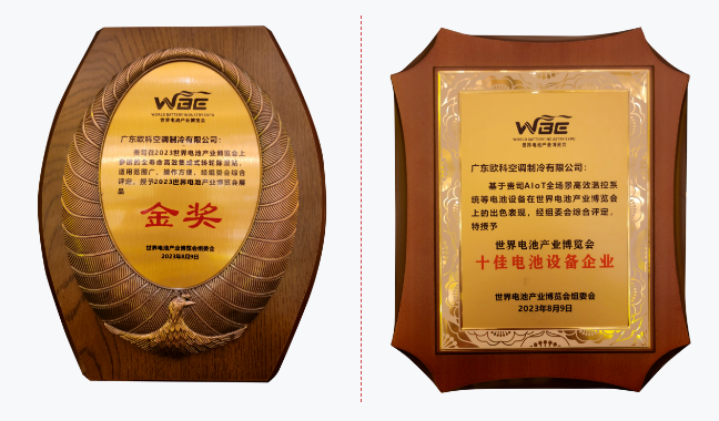 EK全壽命高效集成式轉輪除濕站憑借適用范圍廣、操作方便、高效節能等優勢榮獲“展品金獎”。基于該產品及AloT全場景高效溫控系統等電池設備在世界電池產業博覽會上的出色表現,EK還被組委會授予“十佳電池設備企業”稱號。