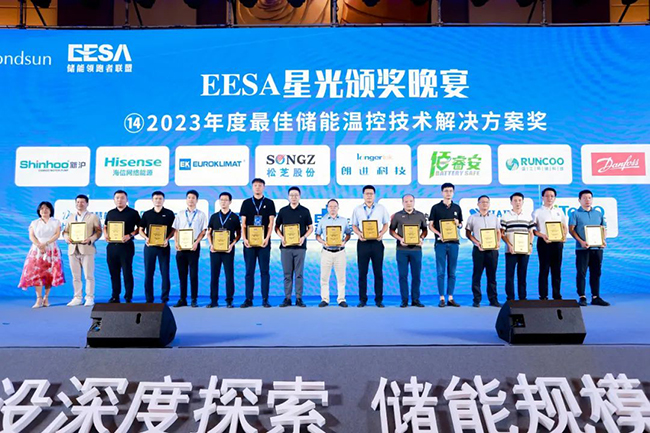 榮譽(yù)見(jiàn)證,砥礪向前。8月29日,EESA星光頒獎(jiǎng)晚宴——“中天&貝盛儲(chǔ)能之夜”在蘇州金雞湖凱賓斯基大酒店隆重舉行。EK受邀出席并榮膺“2023年度最佳儲(chǔ)能溫控技術(shù)解決方案獎(jiǎng)”。