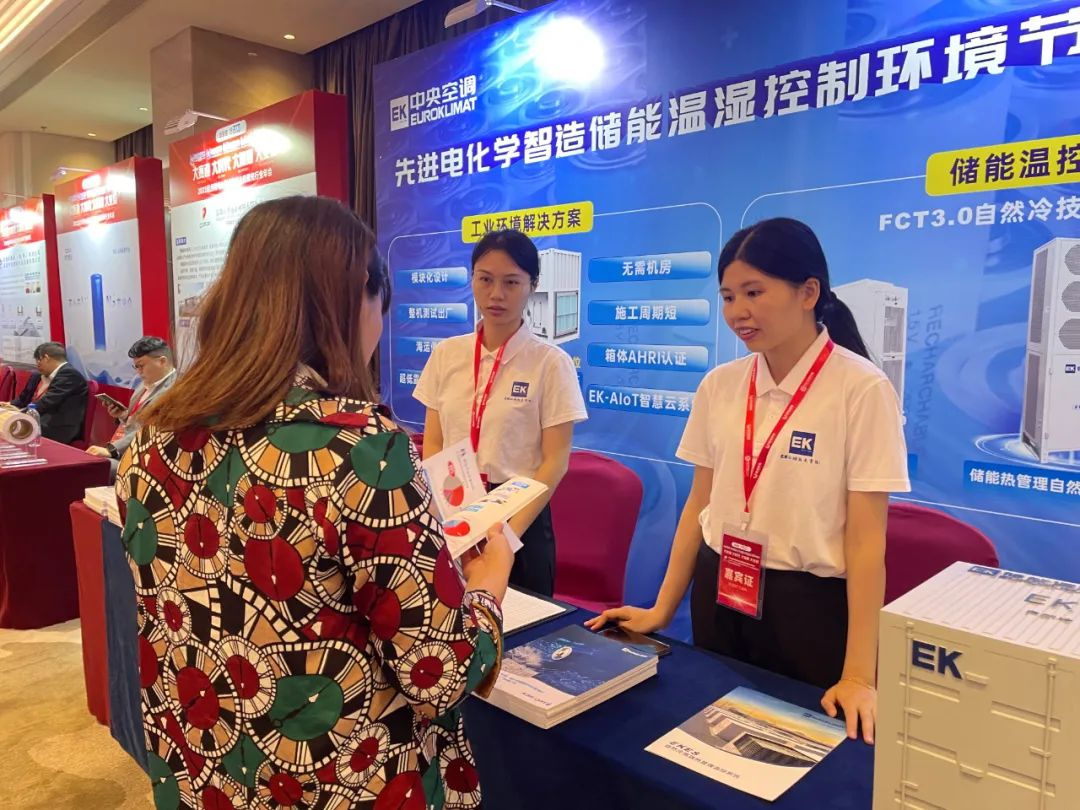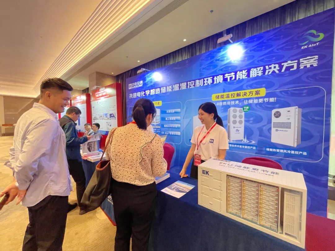 年會現場,EK設立專屬展位,專業工作人員向現場嘉賓介紹應用于儲能行業的產品和解決方案,與現場嘉賓進行深入交流。EK儲能熱管理自然冷液冷溫控、儲能熱管理液冷溫控、儲能熱管理風冷溫控等產品,產品系列齊全,在-40-55℃室外環溫下穩定運行,可實現全場景適應,根據客戶防護、防腐等級要求進行定制,應用于極端氣候、高海拔、鹽霧腐蝕等惡劣工況,保障儲能柜安全穩定運行;同時搭載EK-AloT智慧云平臺,對儲能溫控產品全生命周期進行云端賦能,實現云端智能控制、遠程運維、線上協同、運行優化、節能增效。