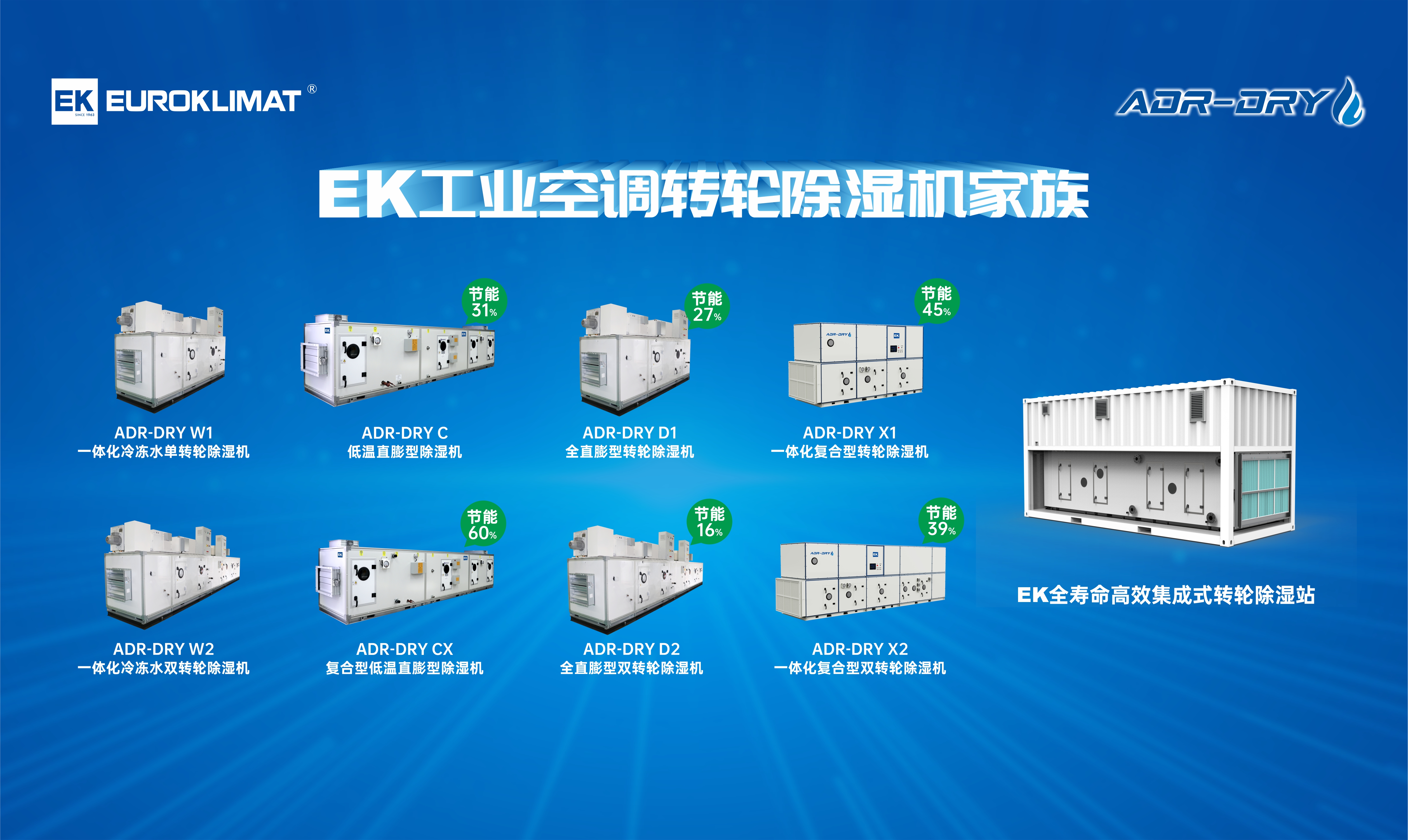 此次獲評OFweek 2023年度鋰電生產(chǎn)環(huán)境優(yōu)秀解決方案獎的ADR-DRY系列一體化高效除濕機(jī)是EK工業(yè)空調(diào)專門為新能源電池除濕領(lǐng)域設(shè)計(jì)的綠色節(jié)能除濕產(chǎn)品。ADR-DRY系列除濕機(jī)產(chǎn)品家族包括:W系列冷凍水轉(zhuǎn)輪除濕機(jī)、C系列低溫直膨除濕機(jī)、D系列直膨轉(zhuǎn)輪除濕機(jī)、X系列高效轉(zhuǎn)輪除濕機(jī)。