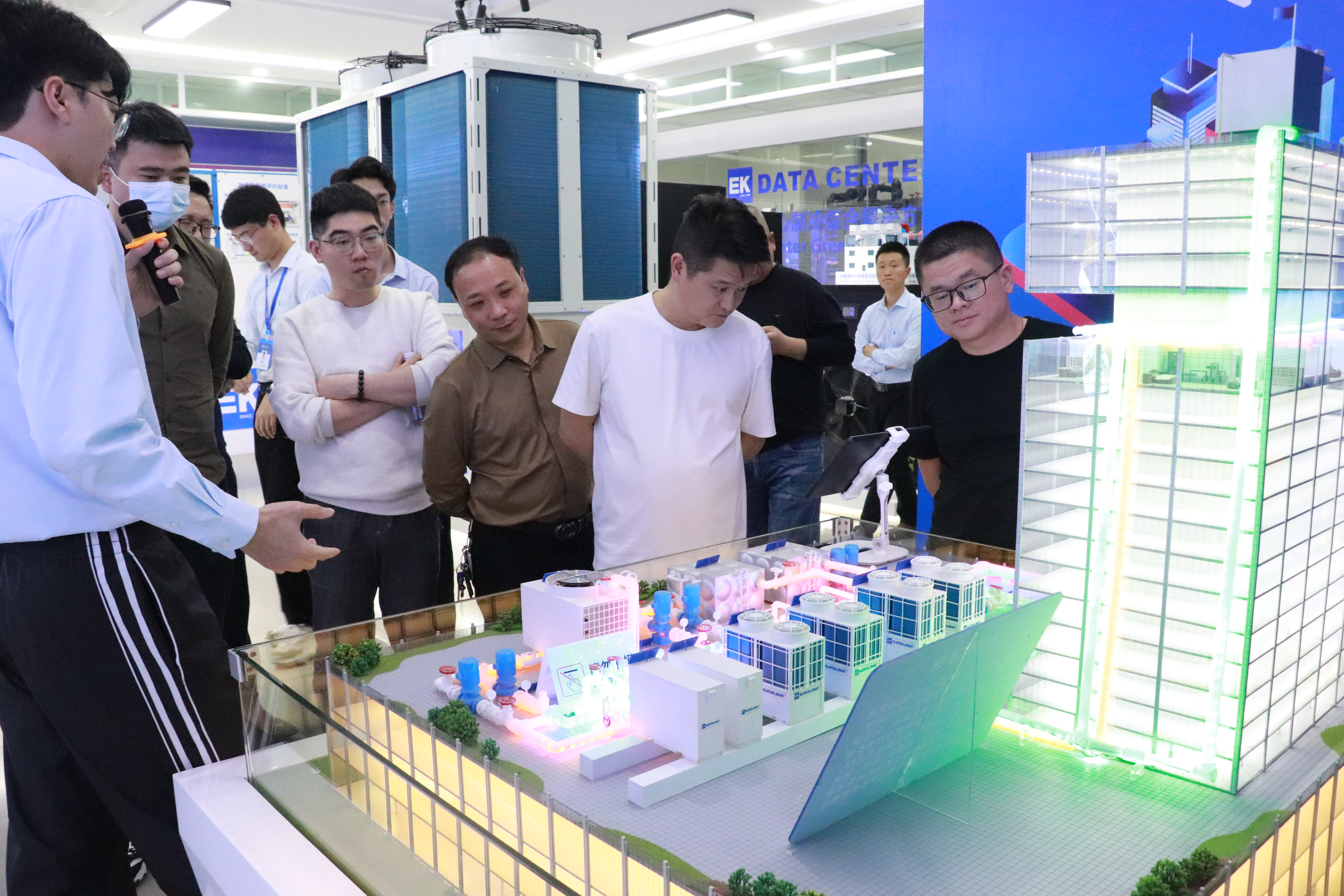 在考察活動中,EK各產品組負責人向經銷商朋友們介紹了EK工業多聯、變頻模塊、EKDX直膨機組、云智慧高效集成冷站、四管制風冷螺桿機組、以及EK-AIoT智慧云系統等核心產品的性能優勢和應用價值,展現了EK的硬核產品力。