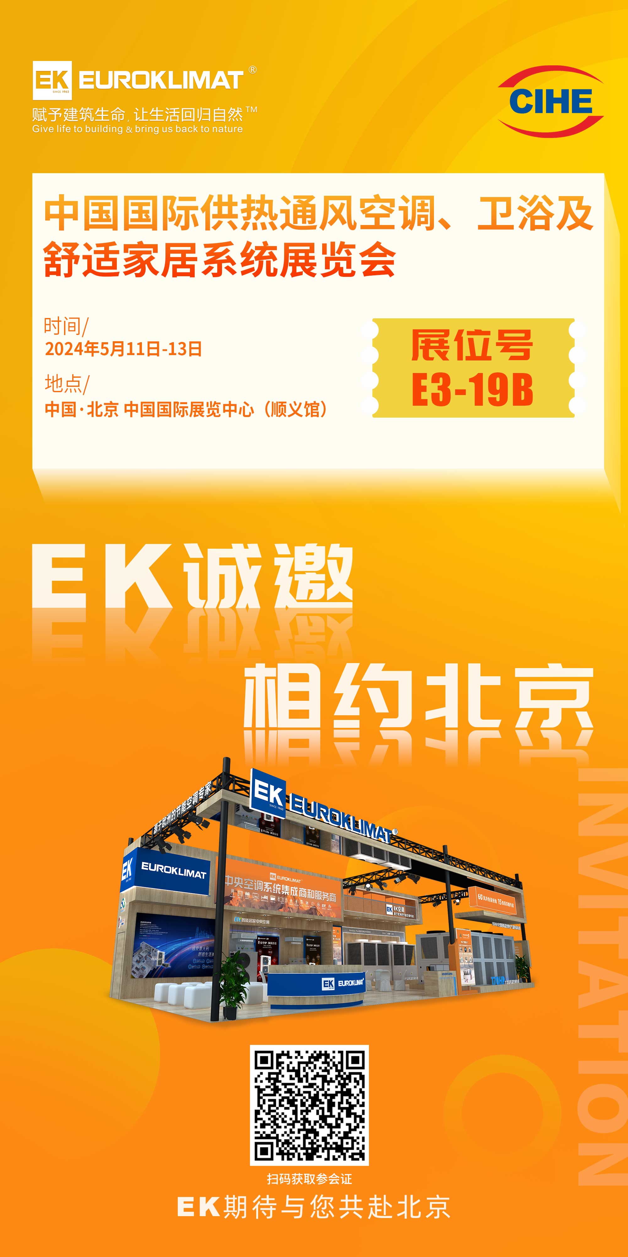 在本屆中國供熱展上,EK空調將展示覆蓋商用、工業、家居全場景綠色供熱解決方案,以超高效、綠色節能的產品和技術為媒介,共同探索未來供熱的無限可能!