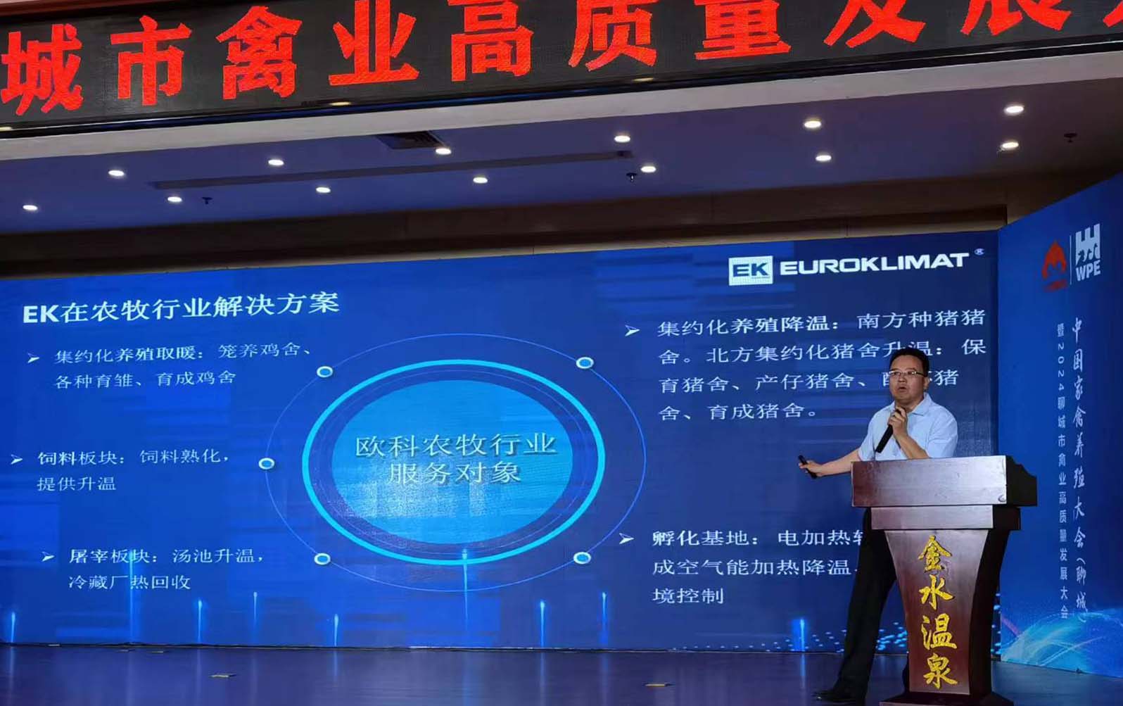 5月30日-5月31日,中國(guó)家禽養(yǎng)殖大會(huì)(聊城站)暨2024聊城禽業(yè)高質(zhì)量發(fā)展大會(huì)在著名的中國(guó)817肉雞之鄉(xiāng)和冀魯豫三省交界的蛋雞聚集地——莘縣順利召開(kāi)。EK空調(diào)作為戰(zhàn)略合作單位,攜集約化養(yǎng)殖環(huán)控解決方案精彩亮相本次盛會(huì),做專題報(bào)告并榮獲“年度消費(fèi)者信得過(guò)優(yōu)質(zhì)禽產(chǎn)品金雞獎(jiǎng)”。