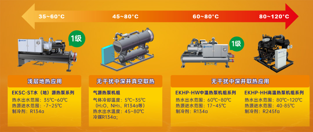 EK空調的寬溫區水(地)源熱泵產品系列,憑借其高效、綠色、穩定、智能等優勢,在地熱能領域展現出強大的競爭力。基于此,徐楓林展開介紹EK空調涵蓋常溫系列、中溫系列、高溫系列和氣源系列的熱泵機組產品陣容。