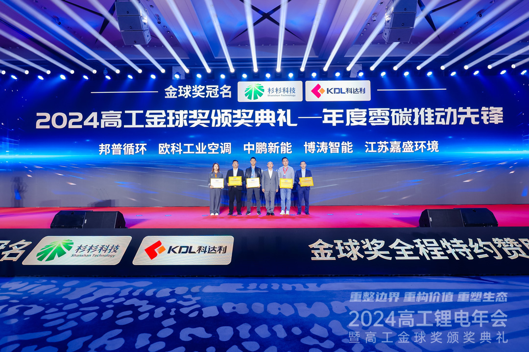 大會同期,2024高工金球獎頒獎典禮隆重舉行,EK工業空調憑借其在節能減碳領域的杰出貢獻和創新實踐,榮獲“2024高工金球獎-年度零碳轉型先鋒”。這一獎項不僅是對EK工業空調在綠色鋰電工廠環境控制解決方案領域領先地位的認可,更是對其在推動鋰電行業綠色轉型方面所做努力的肯定。