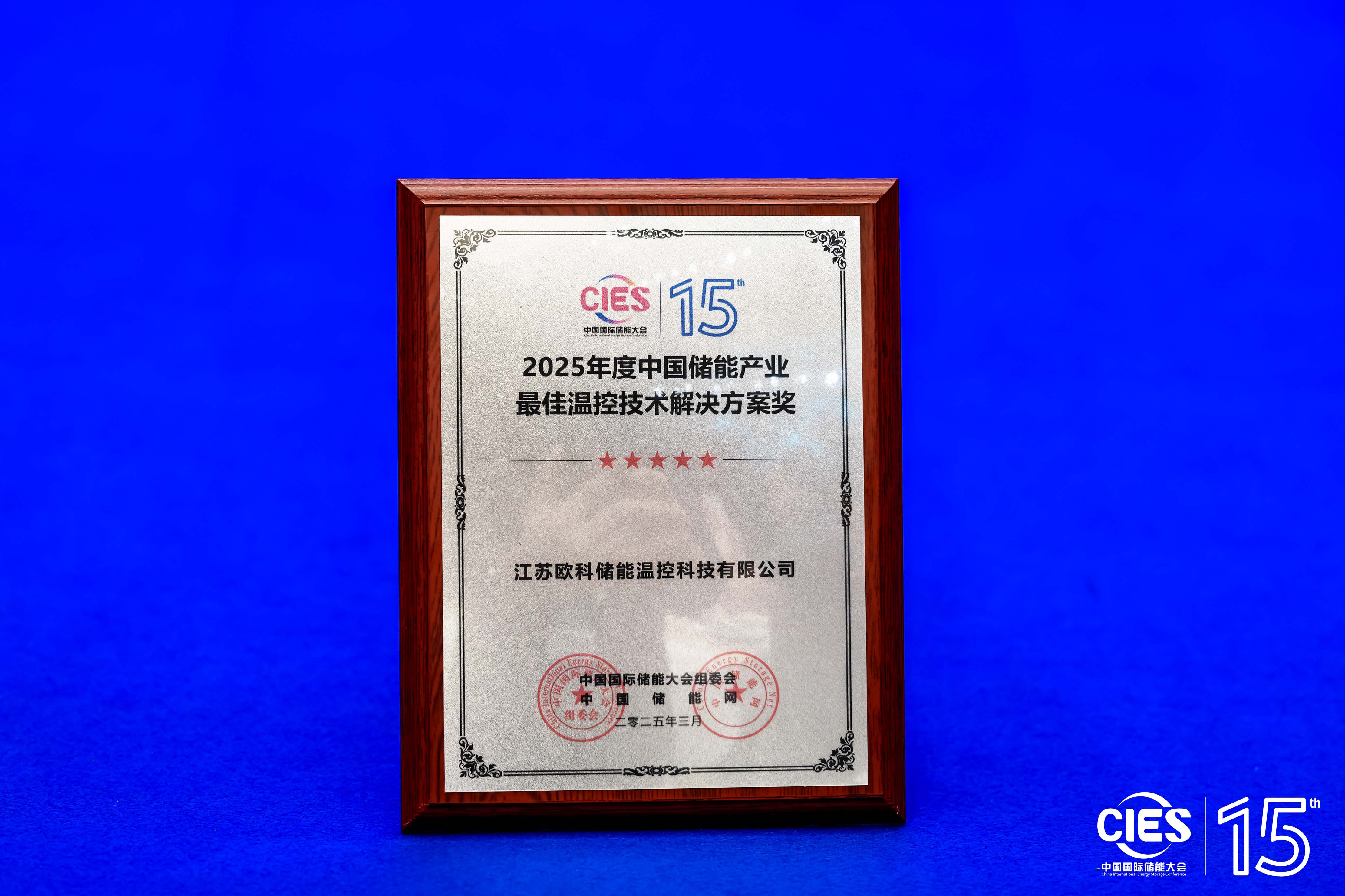 2025年3月23日-26日,CIES2025第十五屆中國國際儲能大會暨展覽會在杭州隆重舉行。在同期舉辦的“2025中國儲能產業最具影響力系列獎項”頒獎盛典上,EK儲能溫控憑借領先的儲能溫控技術實力,強勢斬獲“2025年度中國儲能產業最佳溫控技術解決方案獎”,再次彰顯行業標桿地位。