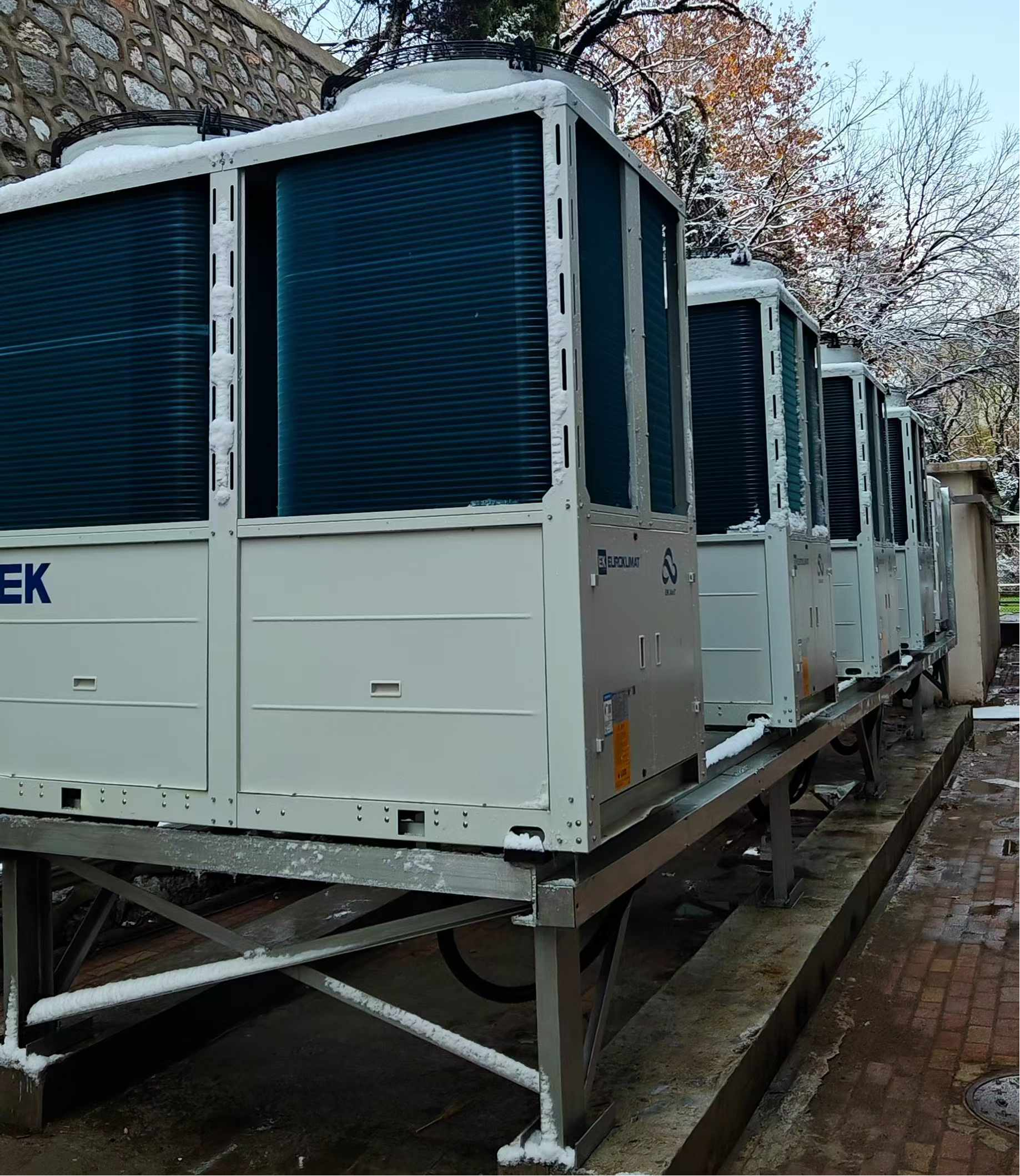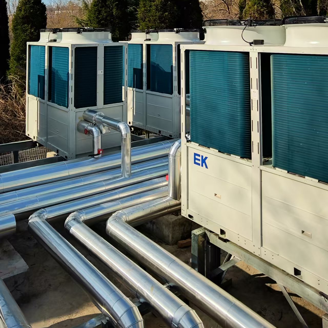EK團隊深入分析項目需求,共配置24臺EK超低溫空氣源熱泵機組,結合“超低溫性能 模塊化設計 智能調控”三大技術優勢,為每棟建筑量身定制綠色智能解決方案。