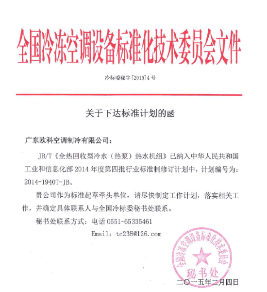 EK作為全熱回收行業(yè)領(lǐng)導(dǎo)者,2015年開始牽頭起草制訂熱回收行業(yè)標(biāo)準(zhǔn),2018年12月1日,JB/T 13515-2018《帶全熱回收的容積式冷水(熱泵)機(jī)組》正式實(shí)施。