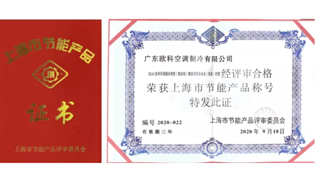 EKAC系列模塊式風(fēng)冷熱泵機組榮獲“上海市節(jié)能產(chǎn)品”稱號